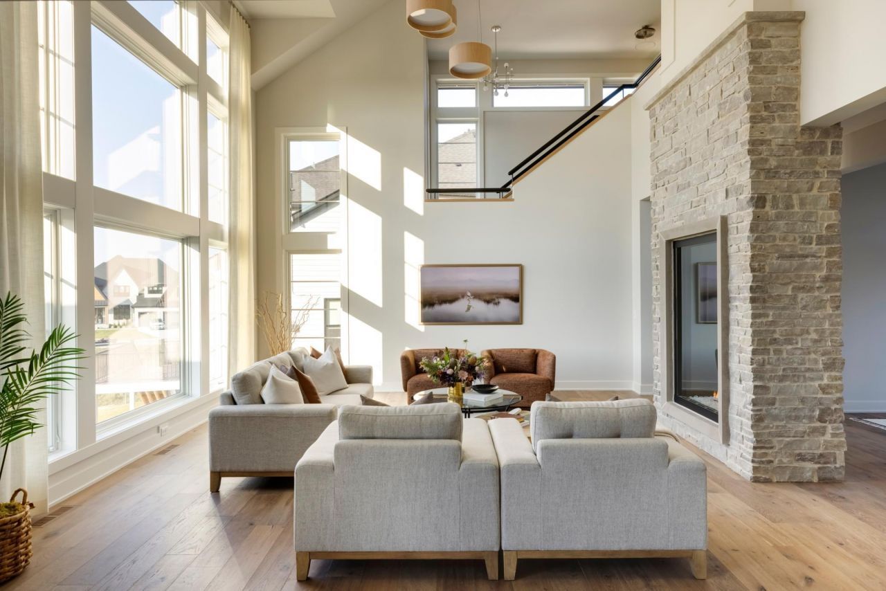 Located in one of Plymouth's most sought-after neighborhoods, this 6,300 sq. ft. Soft Contemporary home artfully blends modern architecture with inviting warmth. The main level features a grand two-sided, two-story stone fireplace, a sunlit great room, and a stunning gourmet kitchen with Cambria countertops, white oak paneling, and top-of-the-line appliances. This level also offers a dining room, versatile study, practical mudroom, serene powder bath, screen porch, deck, and a ballet room. Upstairs, the indulgent primary suite serves as a private retreat with a luxurious bath, soaking tub, curved shower, and expansive walk-in closet. Three additional bedrooms, each with its own ensuite bath, a convenient laundry room, and a loft area complete the upper level. The lower level is an entertainment haven, featuring a sprawling family room, billiards room, game room, and a full bar. A golf simulator and athletic court provide endless recreation opportunities, along with a fifth bedroom and sixth bathroom for added convenience. Every detail in this home is meticulously crafted to offer a sophisticated and comfortable lifestyle.