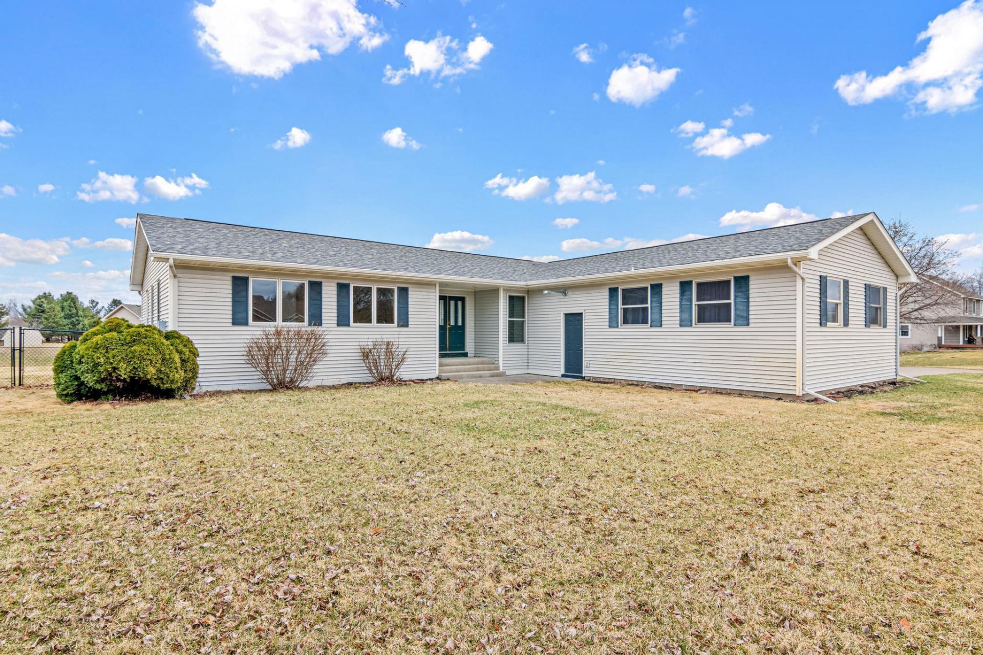 Spacious rambler on nearly an acre with a vaulted main level and room to spread out inside and out. The kitchen and dining area flow easily together, creating a bright, open feel that works well for everyday living and entertaining.With 4 bedrooms and 4 bathrooms, there's plenty of space for guests, hobbies, or a home office. The large owner's suite features a walk-in closet and private bath, creating a comfortable retreat at the end of the day. Recent updates include brand new carpet throughout, fresh paint in much of the home, a brand new furnace, and a roof replaced in 2019.Step outside to enjoy the low-maintenance deck overlooking the fenced yard with space to relax, play, or garden. Additional highlights include a heated double garage, concrete driveway, and in-ground sprinkler system.