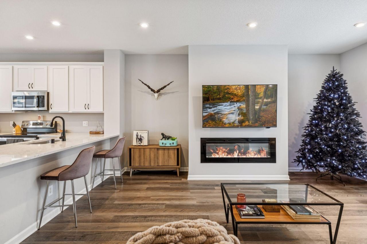 Built in 2021 and impeccably maintained, this gorgeous townhome lives like brand new. The spacious rooms give single-family vibes, but with all the conveniences of association-maintained living. It is uniquely positioned in the community away from busy streets and with private Southern exposure. It is tastefully finished with white trim & doors, 9ft ceilings, and beautiful flooring. Features include a private balcony, fireplace, and a unique double-bar kitchen with stainless, stone counters, and pantry. The en suite primary includes a luxurious bathroom and huge walk-in closet. Laundry is conveniently located in the upper level hall. The lower level features a spacious 2-car garage and a large finished 4th bedroom.Enjoy this amazing location with easy access to both downtowns, White Bear, and Stillwater. Nearby conveniences include the fantastic Gateway Trail and historic 7th Avenue Business District - both just steps away. There's even a Kwik Trip right down the street! This is a great opportunity to own a high quality & newly built townhome with affordable monthly dues.