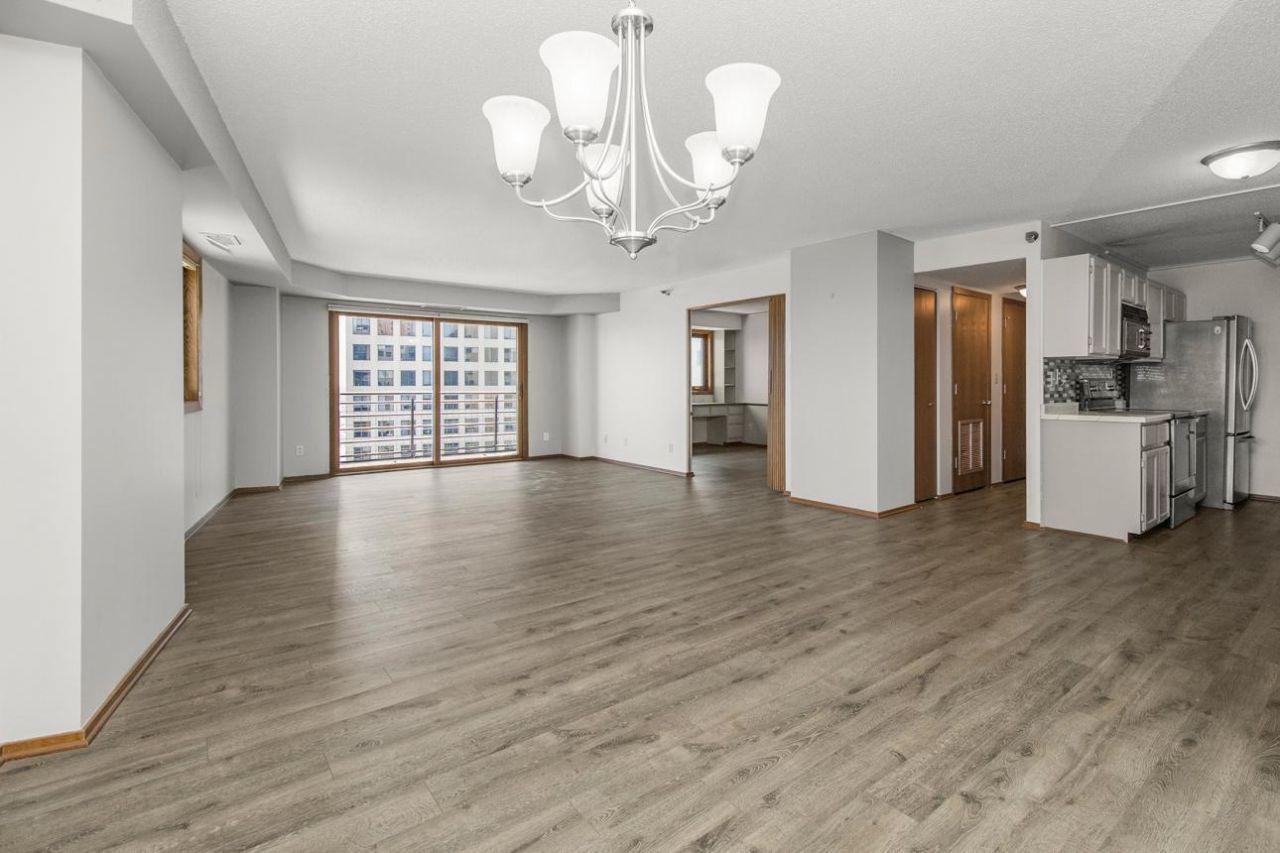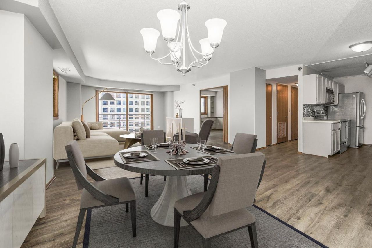 Soaring above the city on the 23rd floor, this refined 2-bedroom, 2-bath condo in City Walk offers a serene escape in the center of St. Paul. Stylishly updated with luxury vinyl plank flooring and new carpet in the primary suite, the unit blends functionality with elevated design. Residents enjoy premium amenities?a 12th floor rooftop pool, fitness center, sauna, and private gated parking?all within a secure skyway-connected building steps from premier dining and entertainment. Seller has an assumable mortgage at 2.5% interest rate.
